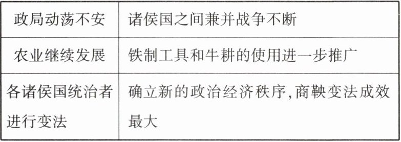 (3)影响:使秦国确立封建生产关系;使秦国综合国力大为增强;为以后秦统一中国奠定了基础。