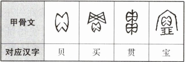 13. (2023·河南)殷墟出土了大量的贝,商朝时期的一些文字都含“贝”字(如下表)。据此判断,贝在商朝应该是【