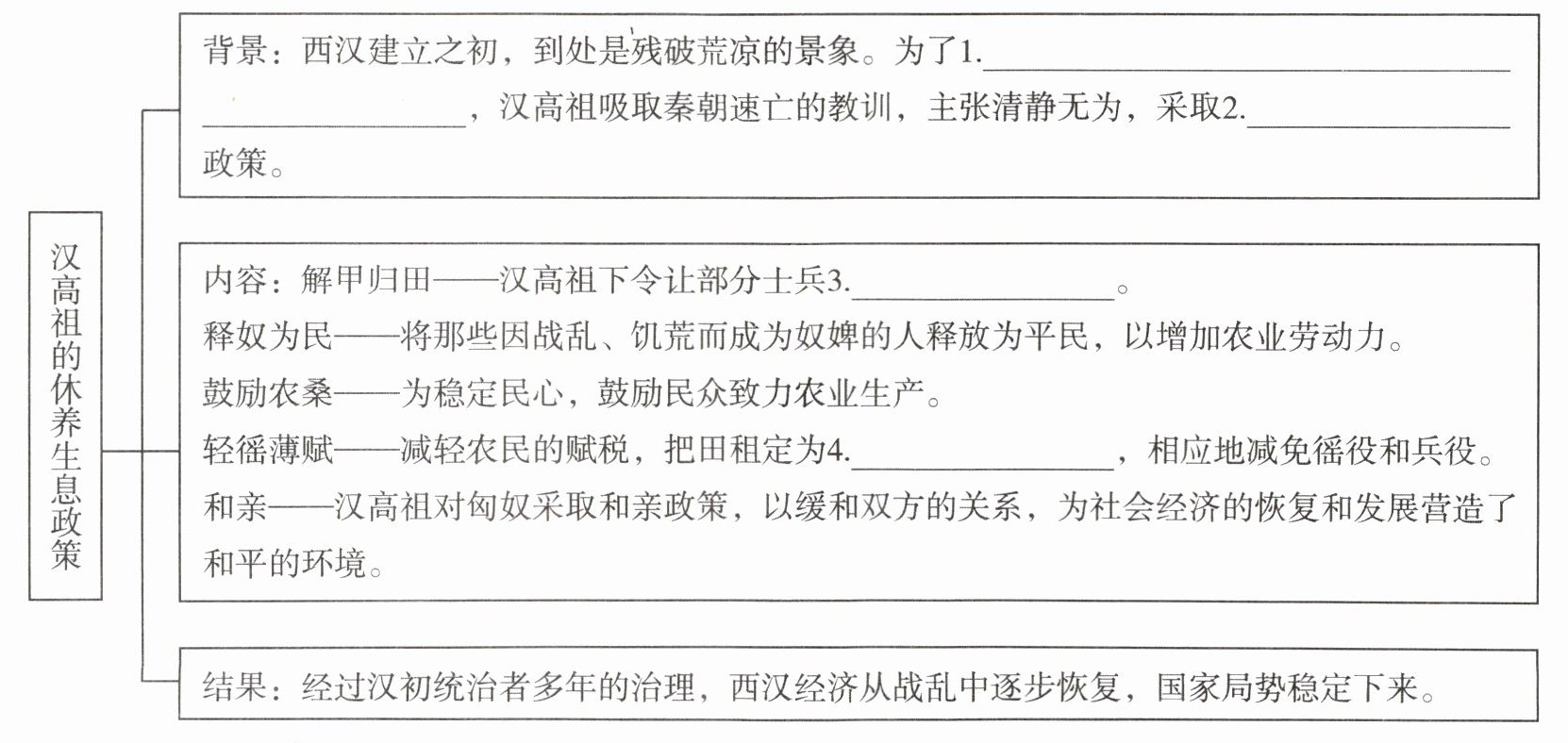 1.巩固政权和稳定社会局势 2.休养生息 3.还乡务农 4.十五税一
