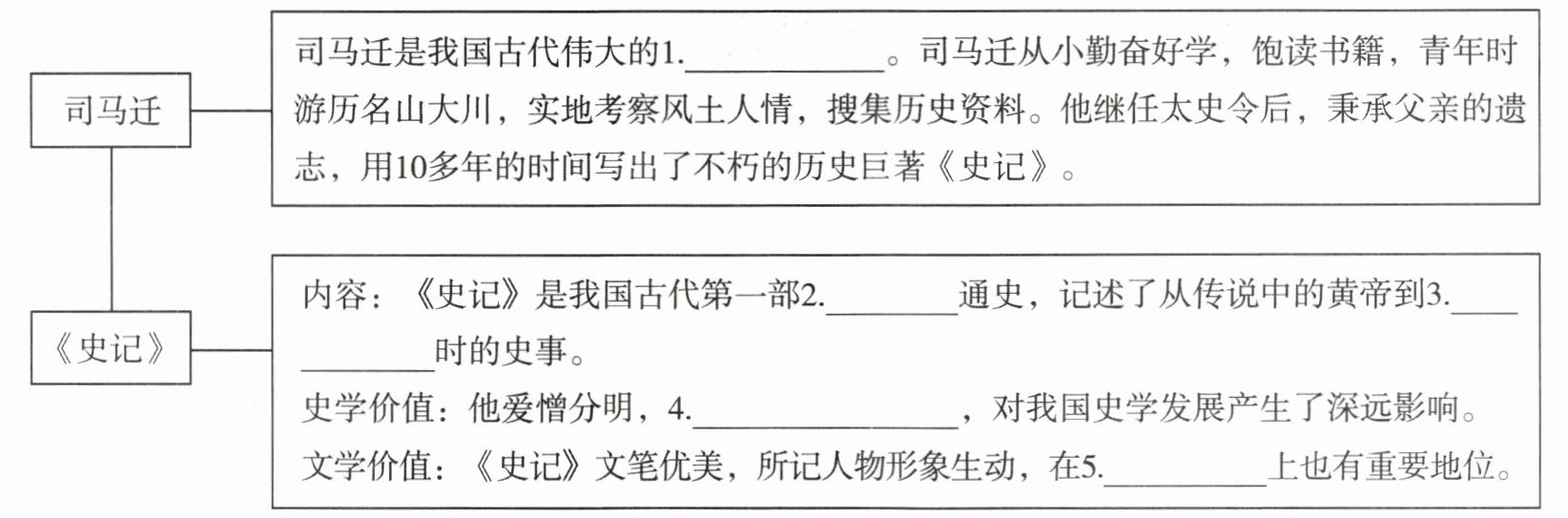 1.史学家 2.纪传体 3.汉武帝 4.秉笔直书 5.文学史