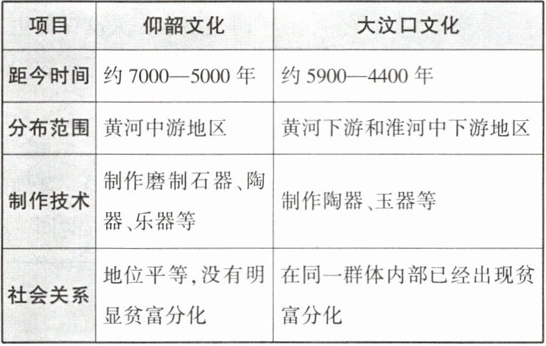 10. 从人类社会发展的角度可知,仰韶文化和大汶口文化最大的不同之处体现在【