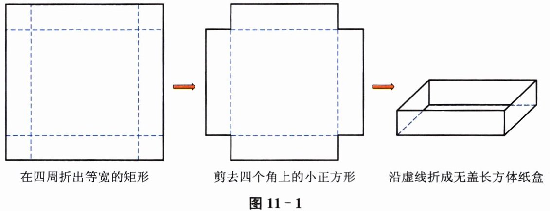 取一张正方形纸片,按如图 11-1 所示的方法进行操作.