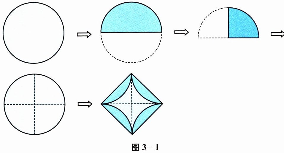 (1)剪下附录 A 中的圆形纸片,按图 3-1 所示的方法折叠.