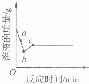 9. 将足量的$Zn粉投入一定质量的AgNO_3和Cu(NO_3)_2$的混合溶液中发生反应,溶液的质量随时间的变化关系如图所示。下列说法不正确的是(