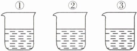 2. 如图所示的三个烧杯,各倒入 $ 100mL $蒸馏水,然后依次加入硝酸钠固体,并充分搅拌。已知加入的硝酸钠固体的质量从**①**~**③**依次增多。请根据图示判断烧杯中的溶液肯定是不饱和溶液的是(