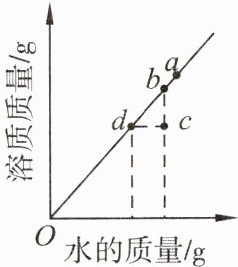 8. 化学中常借助曲线图来表示某种变化过程。图中的直线表示 $ t^{\circ}C $时,某物质在不同质量的水中溶解达到饱和状态时的质量。对于 $ a $、$ b $、$ c $、$ d $四点的分析,你认同的是(