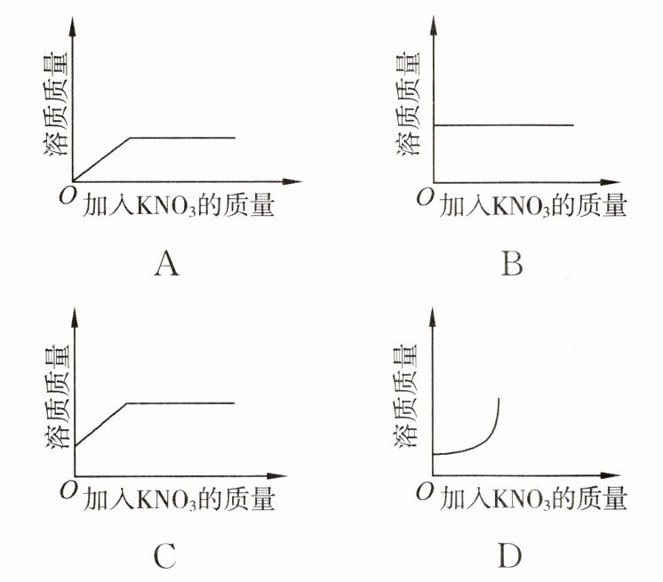 5. $ 25^{\circ}C $时向一定量不饱和 $ KNO_3 $溶液中逐渐加入 $ KNO_3 $固体,则下列图像能正确表示此过程溶质质量变化规律的是(
