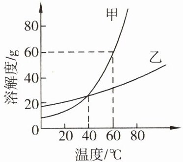 C.$40\ ^{\circ}C$ 时,甲、乙两种物质的饱和溶液中溶质质量分数不相等
