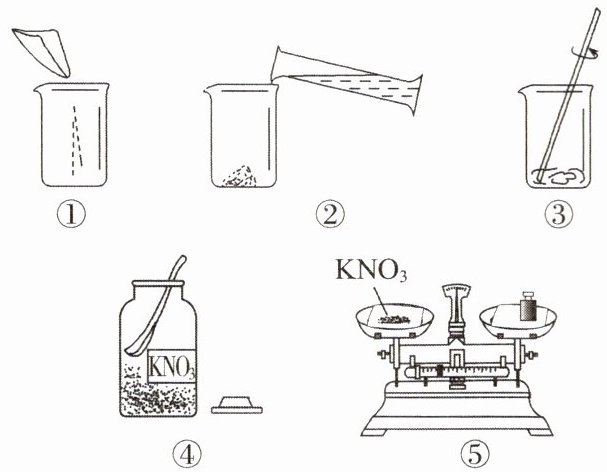 5. 某兴趣小组展开对硝酸钾固体及其溶液的实验探究,现配制 $50\ g\ 5\%$ 的硝酸钾溶液。下图所示操作正确的顺序是(