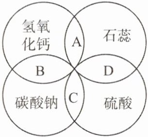 4. 石蕊、硫酸、氢氧化钙、碳酸钠是常见的四种物质,它们的溶液之间的反应关系如图所示。图中两圆相交部分(A、B、C、D)表示物质间反应的主要实验现象,其中描述正确的是(
