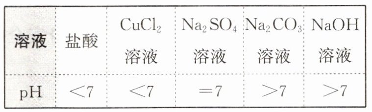 例题 某同学在实验室测定了几种溶液的 pH,其结果如表所示。