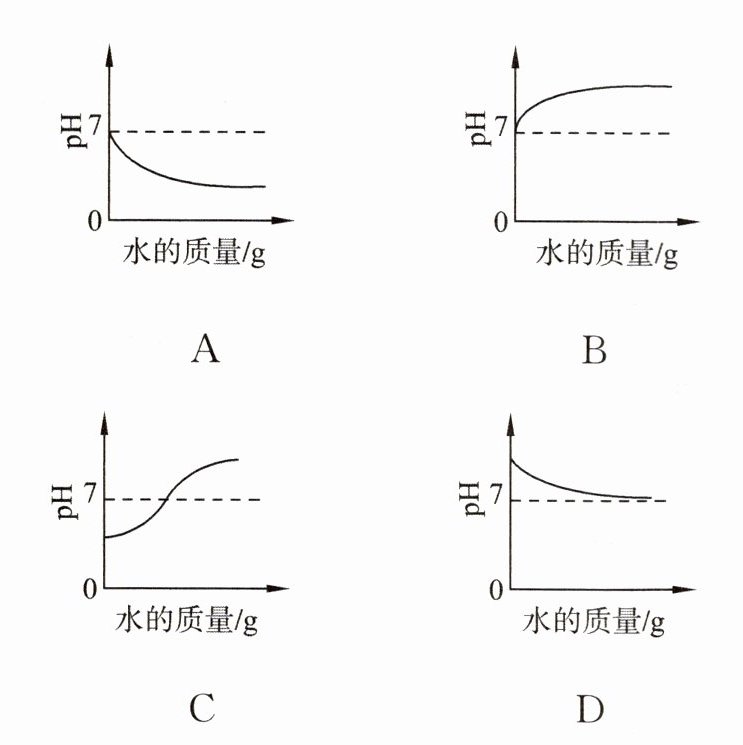 6. 取少量浓氢氧化钠溶液于烧杯中,向其中逐滴加入蒸馏水,用 pH 计测得烧杯中溶液 pH 的变化情况如图所示,其中正确的是(