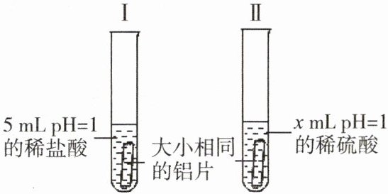 (2)实验过程中,可以通过观察“产生气泡的快慢”来比较铝与稀盐酸和稀硫酸反应的剧烈程度,则 x=