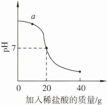 10. 盐酸和氢氧化钠溶液发生酸碱中和反应时,利用数字传感器测得烧杯中溶液 pH 的变化如图所示。恰好完全反应时,消耗溶质质量分数为 4.0%的氢氧化钠溶液 20 g。