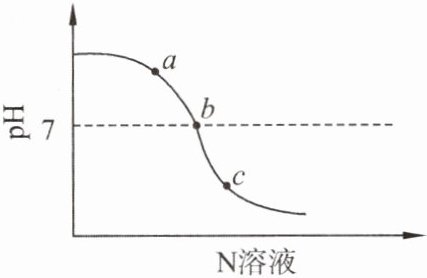 15. 已知 M、N 分别是稀盐酸、氢氧化钠溶液中的一种。某化学兴趣小组同学在一定量的 M 中不断滴加 N,并测定所得溶液的 pH,如图所示。