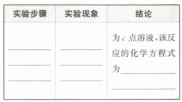小刚认为除了采用加铁钉的方法,还可采用加入其他试剂的方法证明为 c 点溶液,写出你的方案(酸碱指示剂及 pH 试纸除外)。