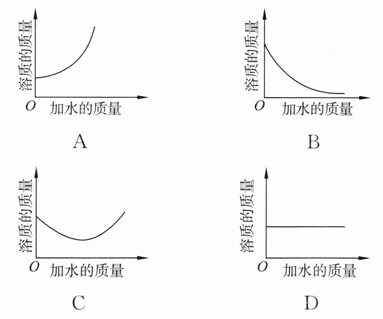 5. 向一定溶质质量分数的蔗糖溶液中逐渐加水稀释,下列图像符合此溶液中溶质质量变化规律的是(