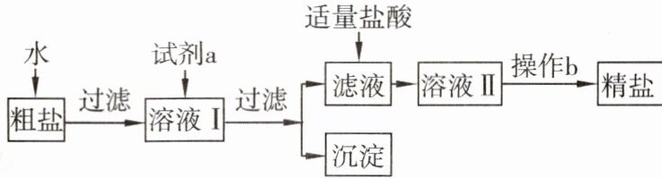 7. 若要除去粗盐中可溶性的杂质$(MgCl_2、$$CaCl_2、$$Na_2SO_4),$常用下面的流程来进一步提纯: