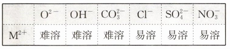 5. $M$是一种金属元素,$M^{2+}$与其他几种离子构成的化合物的溶解性见下表。根据以上信息,判断下列反应肯定不能发生的是(