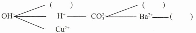 【应用】(4)请在Ca²⁺、SO₄²⁻、NH₄⁺这三种离子中选择合适的离子填入下面合适的“( )”中,使其形成一个复分解反应网络(图中直线相连的阴、阳离子之间能够两两结合发生反应)。