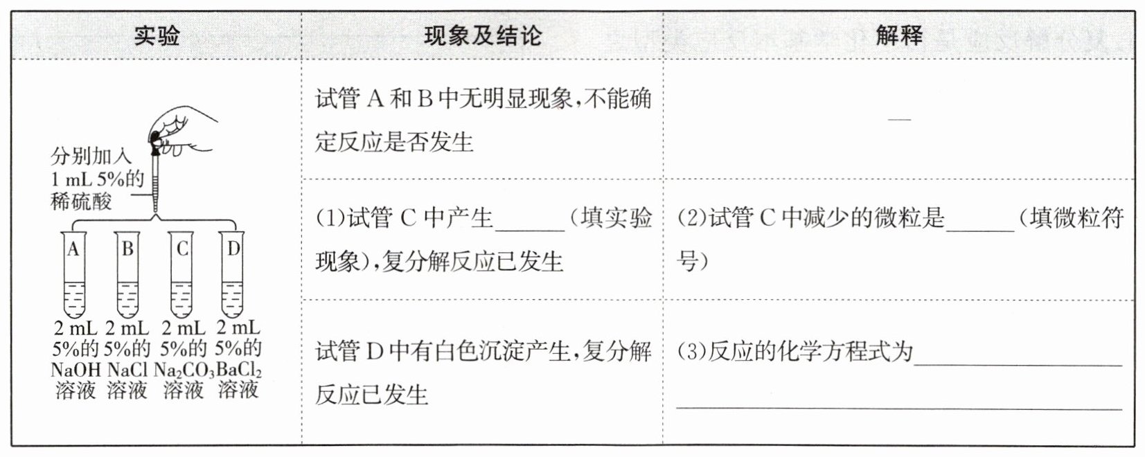 。【质疑】从微观角度思考,上述复分解反应的实质是什么?