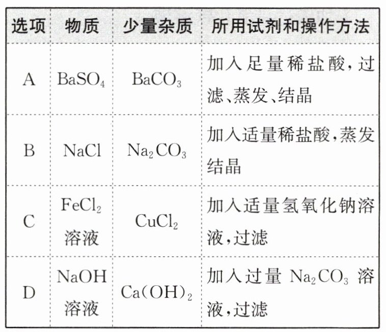 7. 除去下列物质中的少量杂质,所用的试剂和操作方法都正确的是(