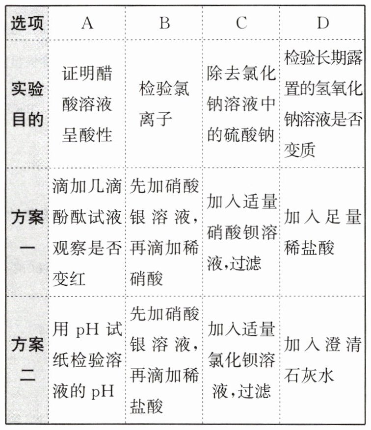 7. 下列是某化学兴趣小组设计的实验方案,其中方案一、方案二都合理的是(