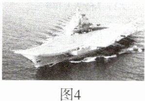 (3)我国航母(图 4)的飞行甲板,既能承受舰载机起降时产生的强烈冲击和摩擦,也能承受舰载机的尾流喷射,还能遭受潮湿盐雾的海洋大气环境侵蚀。由此可推知,制造飞行甲板的材料具有的性质是