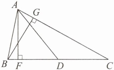 如图,已知AF,BG为△ABC的高,AD为△ABC的中线,AF= 6,BC= 12,BG= 5。