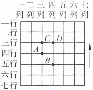 4. 如图,有一个方队正沿箭头所指的方向前进,$A$ 的位置为第三列第四行,表示为 $(3,4)$,那么 $B$ 的位置可表示为