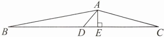 7. 如图,在△ABC中,AD,AE分别是BC边上的中线和高,AE= 2 cm,$S_{△ABD}= 8 cm^2,$求BC的长。