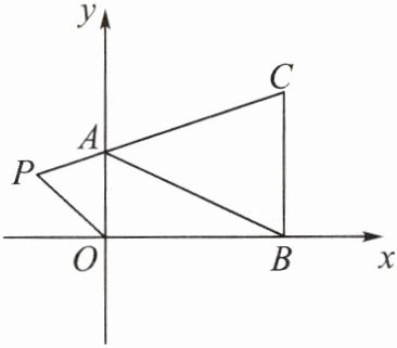 (2)如果在第二象限内有一点$P(m,1)$,满足四边形$ABOP的面积是\triangle ABC$的面积的 2 倍,求满足条件的点$P$的坐标。