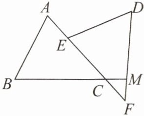 【变式训练2】如图,已知$\triangle ABC \cong \triangle EDF$,点$A$,$E$,$C$,$F$在同一条直线上,延长$BC交DF于点M$。若$\angle A = 70^{\circ}$,$\angle D = 62^{\circ}$,求$\angle CMF$的度数。