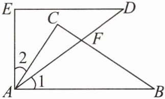 如图,在 $ \triangle ABC $ 和 $ \triangle ADE $ 中,$ AB = AD $,$ AC = AE $,$ \angle 1 = \angle 2 $,$ AD $,$ BC $ 相交于点 $ F $。