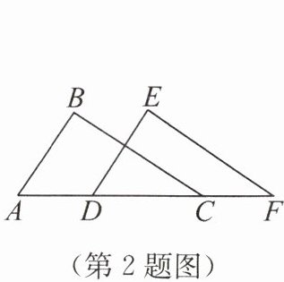 2. 如图,已知点 $ A $,$ D $,$ C $,$ F $ 在同一条直线上,$ AB = DE $,$ BC = EF $。要使 $ \triangle ABC \cong \triangle DEF $,还需要添加的一个条件是(