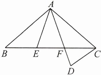 7. 如图,在 $ \triangle ABC $ 中,$ AB = AC $,点 $ E $,$ F $ 在边 $ BC $ 上,且 $ BE = CF $,点 $ D $ 在 $ AF $ 的延长线上,且 $ AD = AC $。