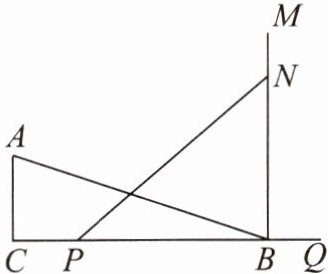 6. 如图,已知 $CA \perp CQ$,垂足为点 $C$,$AC = 3\ cm$,$BC = 9\ cm$,射线 $BM \perp CQ$,垂足为点 $B$。动点 $P$ 从点 $C$ 出发以 $1\ cm/s$ 的速度沿射线 $CQ$ 运动,点 $N$ 为射线 $BM$ 上的动点,随着点 $P$ 运动而运动,满足 $PN = AB$,当点 $P$ 运动