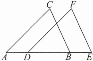 5. 如图,点 $A$,$D$,$B$,$E$ 在同一条直线上,且 $AD = BE$,$AC // DF$。添加一个条件,使得 $\triangle ABC \cong \triangle DEF$。不增加任何新的字母和辅助线,这个条件可以是