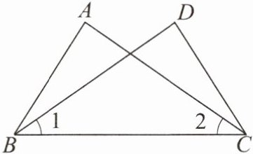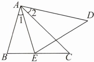 7. 如图,已知 $AB = AE$,$\angle 1 = \angle 2$,$AC = AD$,求证:$\triangle ABC \cong \triangle AED$。