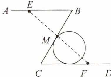 9. 如图,在新修建的小区中有一条“Z”字形绿色长廊 ABCD,其中 AB // CD。在 AB,BC,CD 三段绿色长廊上各修一座小凉亭 E,M,F,且 BE = CF,点 M 是 BC 的中点。在凉亭 M 与 F 之间有一个池塘,不能直接到达。要想知道 M 与 F 之间的距离,只需要测出线段 ME 的长度,这样做合适吗?请说明理由。