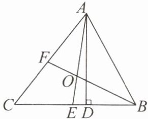 11. 如图,已知△ABC 中 AD 是 BC 边上的高,AE,BF 分别是∠CAB,∠ABC 的平分线,并相交于点 O。若∠CAB = 50°,∠C = 60°,则∠DAE =