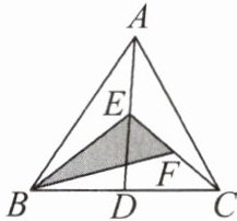 7. 如图,在△ABC 中,已知 D,E,F 分别为 BC,AD,CE 的中点,且 $ S_{△ABC} = 4 \, cm^2 $,则阴影部分的面积等于(