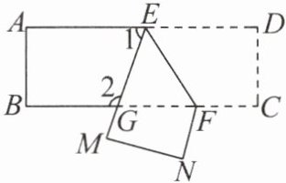 例2 如图,把一张长方形纸片ABCD沿EF折叠后,点D,C分别落在M,N的位置上,EM与BC交于点G。若∠EFG = 55°,求∠1和∠2的度数。