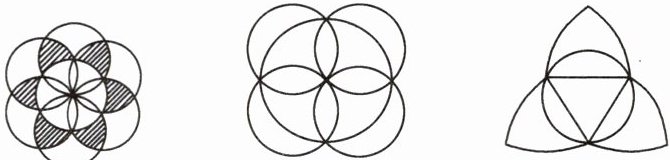三条弧围成的图形就是所需图形的一部分,根据轴对称性质完善图形,最后涂上色彩。