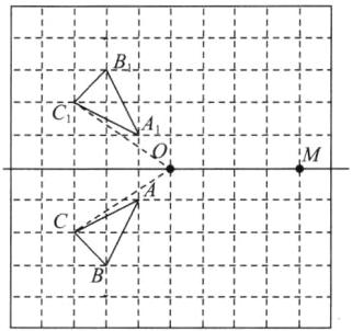(1)画出$△ABC关于直线OM对称的△A_1B_1C_1$;