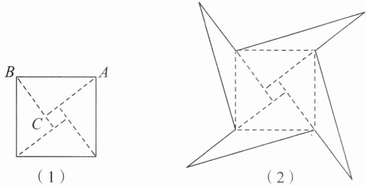 6. 如图,图(1)是我国古代著名的“赵爽弦图”的示意图,它是由四个全等的直角三角形围成的。已知 $AC= 6$,$BC= 5$,将四个直角三角形中边长为 $6$ 的直角边分别向外延长一倍,得到如图(2)所示的“数学风车”,则这个风车的外围周长是