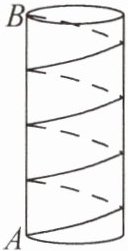 8. 如图,为了庆祝国庆节,学校准备在教学楼大厅的圆柱体柱子上贴彩带,已知柱子的底面周长为$1m$,高为$3m$。如果要求彩带从柱子底端的$A处均匀地绕柱子4圈后到达柱子的顶端B$处(线段$AB$与地面垂直),那么彩带的长度至少为多少?