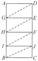 解:如图,把圆柱的侧面展开,得到四个长方形,其中AD,GE,HF,IJ,BC为圆柱的底面周长,