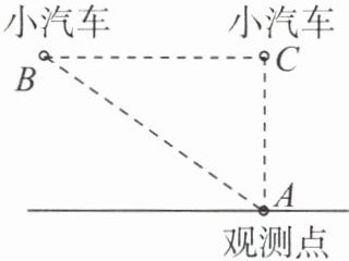 13. (10 分)为整治城市道路汽车超速现象,交警大队在某道路旁进行流动测速。如图,一辆小汽车在该城市道路上由东向西直行,某一时刻刚好行驶到车速检测仪 $ A $ 正北方向 $ 60 m $ 的 $ C $ 处,过了 $ 4 s $ 后,小汽车到达离车速检测仪 $ A $ $ 100 m $ 的 $ B $ 处。已知该段城市道路限速 $ 60 km/h $,则这辆小汽车是否超速?