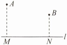 14. (12 分)如图,在平直的河岸 $ l $ 的同侧有 $ A $,$ B $ 两个村庄,$ A $,$ B $ 到 $ l $ 的距离 $ AM $,$ BN $ 分别是 $ 5 km $,$ 3 km $,且 $ MN = 6 km $。现计划在河岸上建一座抽水站 $ P $,用输水管向两个村庄 $ A $,$ B $ 供水,则输水管长度最少为多少?